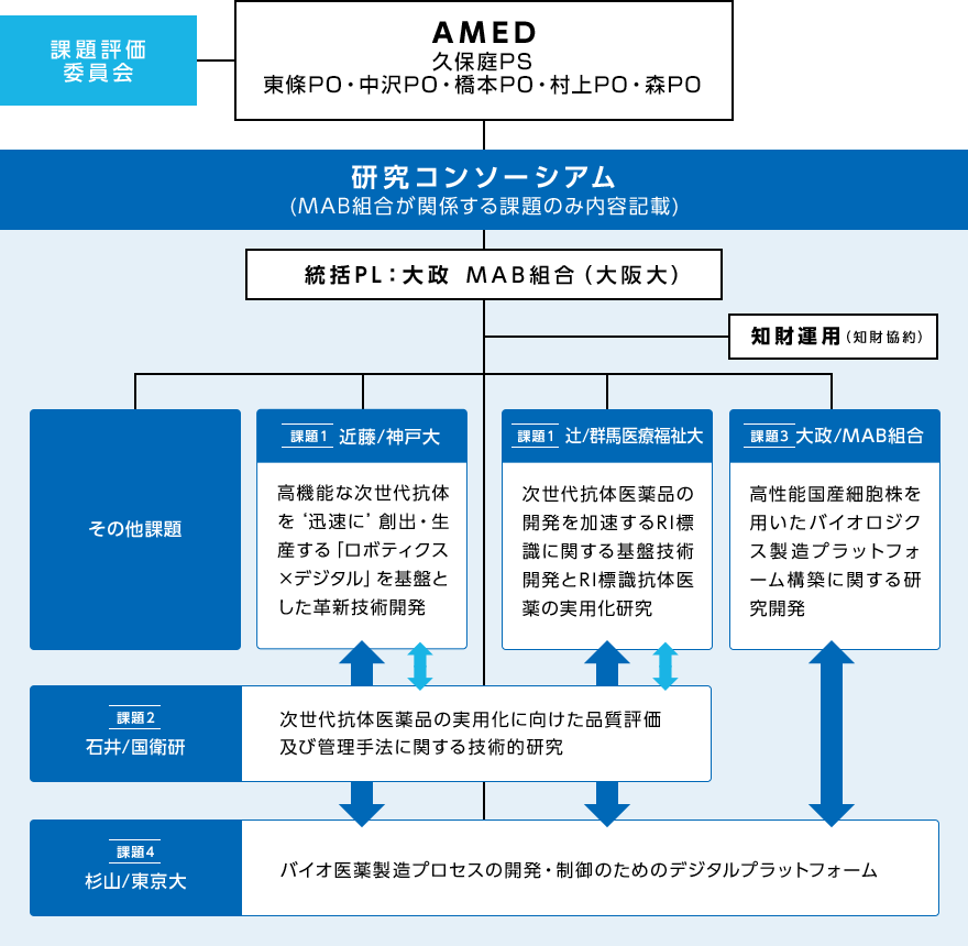 この課題に対応する為に、国内の関連技術を保有する産学官が結集し、次世代抗体医薬品の要素技術の開発及び製造技術プラットフォームの構築を目指します。